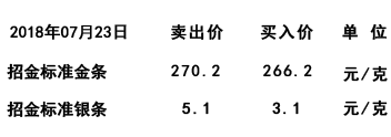 | 2018.07.23日 基礎(chǔ)金價(jià):270.2元/克,回購價(jià):266.6元/克 | 深圳市招金金屬網(wǎng)絡(luò)交易有限公司 | 2018-07-23 |